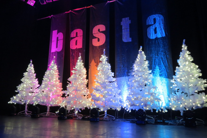 Zwei Dinge, die wir loswerden müssen: Zum einen ist keinem etwas passiert; weder uns fünf bastas, noch unserem Tontechniker Börje Pöhler (4.v.l.), noch dem großartigen Theater.